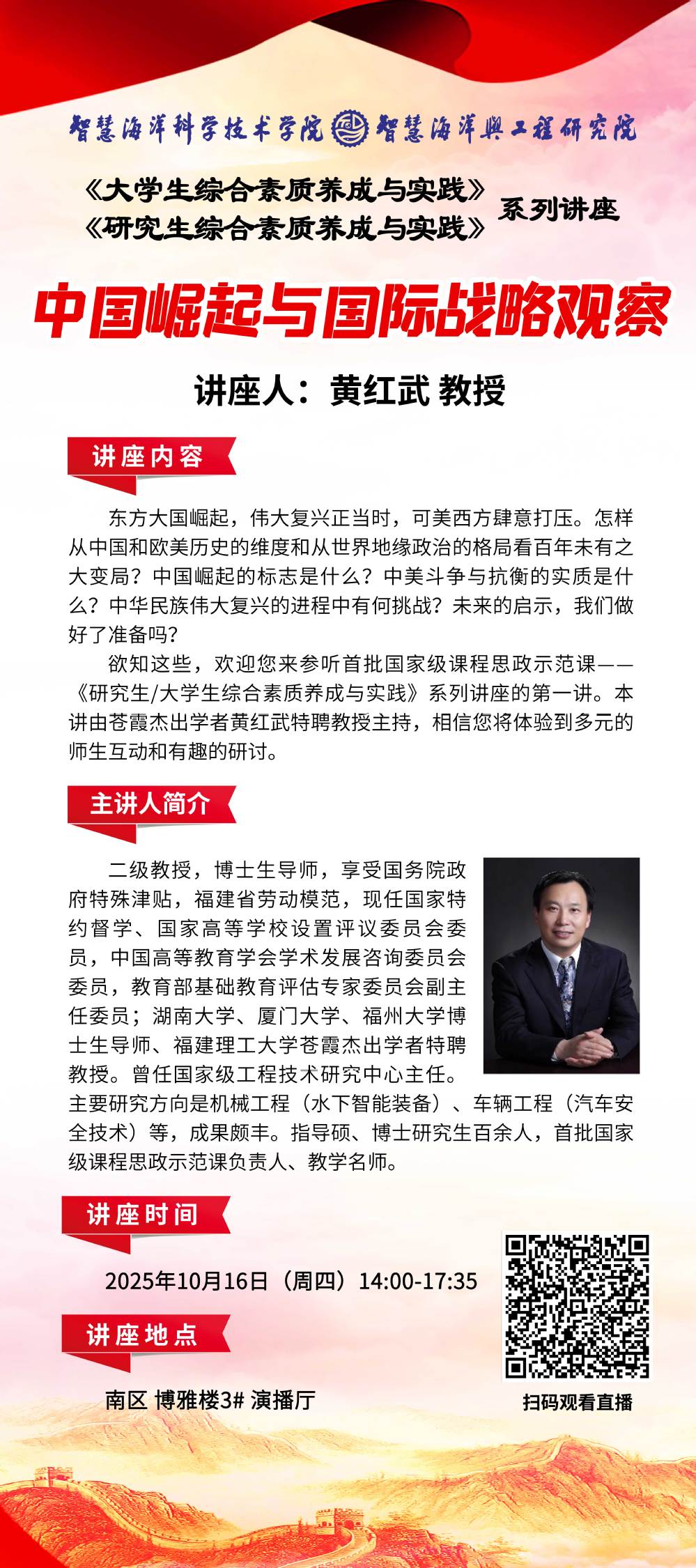 《大学生综合素质养成与实践》《研究生综合素质养成与实践》系列讲座预告:中国崛起与国际战略观察