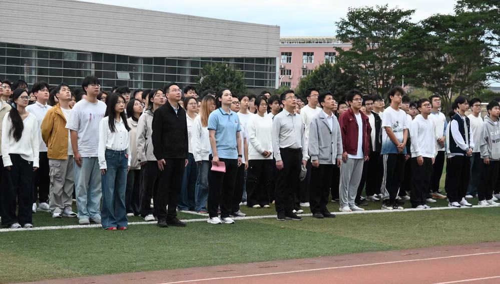 11月10日,我院在旗山南校区田径场隆重举行“旗映初心,笃行报国”国旗下讲话活动。院党委书记王强,校团委副书记、体育教研部副主任林莉,院党委副书记詹伟鹏,辅导员以及全体学生共同参加仪式。