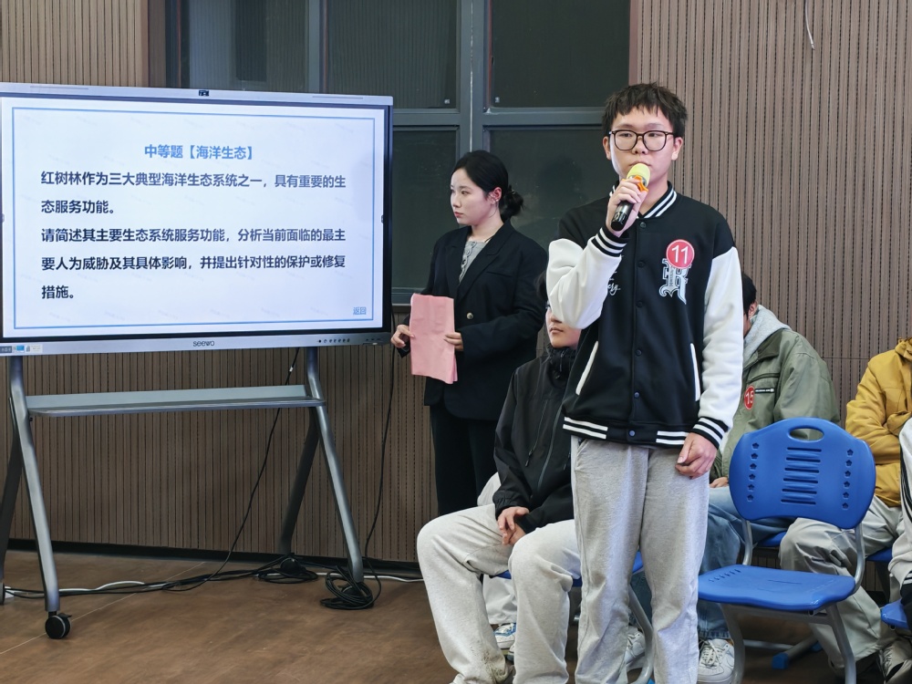 历经初赛的激烈角逐,15 名优秀学子脱颖而出,成功晋级决赛。本次决赛聚焦物理海洋、海洋地质、海洋科技、海洋资源、海洋生态、海洋文化等核心知识领域,精心设计必答、抢答、答辩三大核心环节,以层层递进的竞技形式,综合检验选手的海洋知识储备、逻辑思维与临场应变能力。