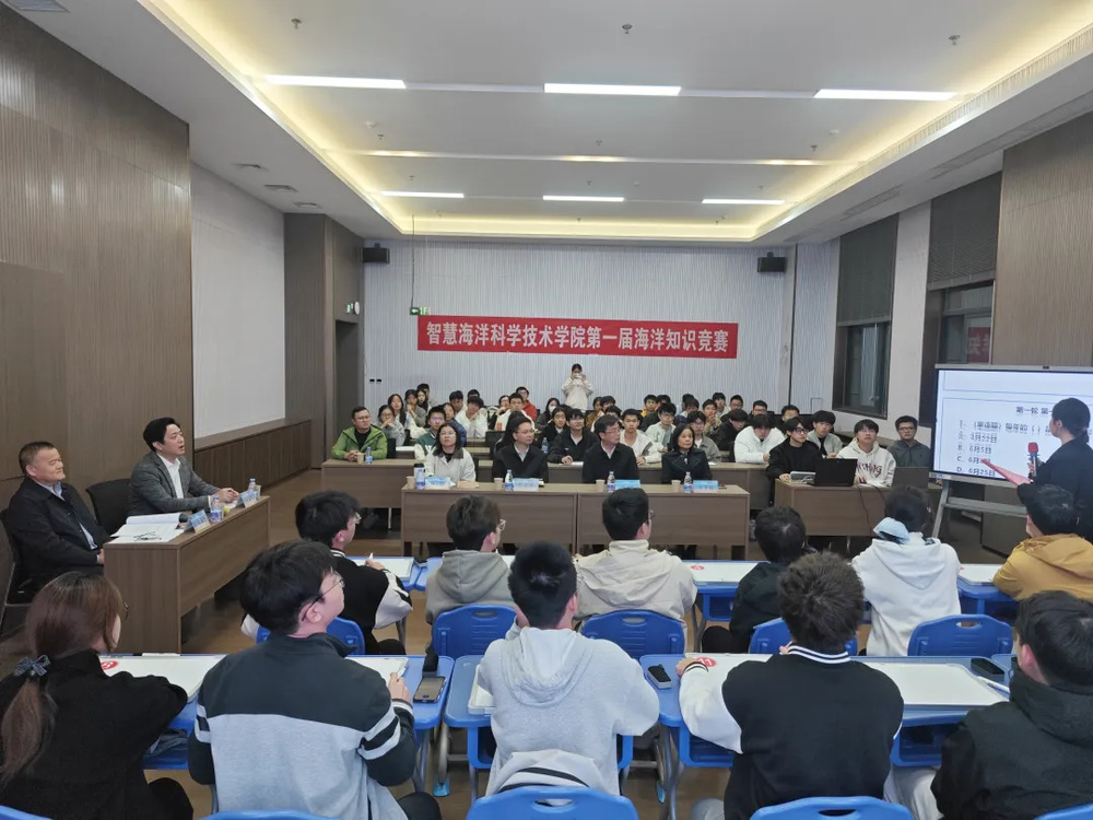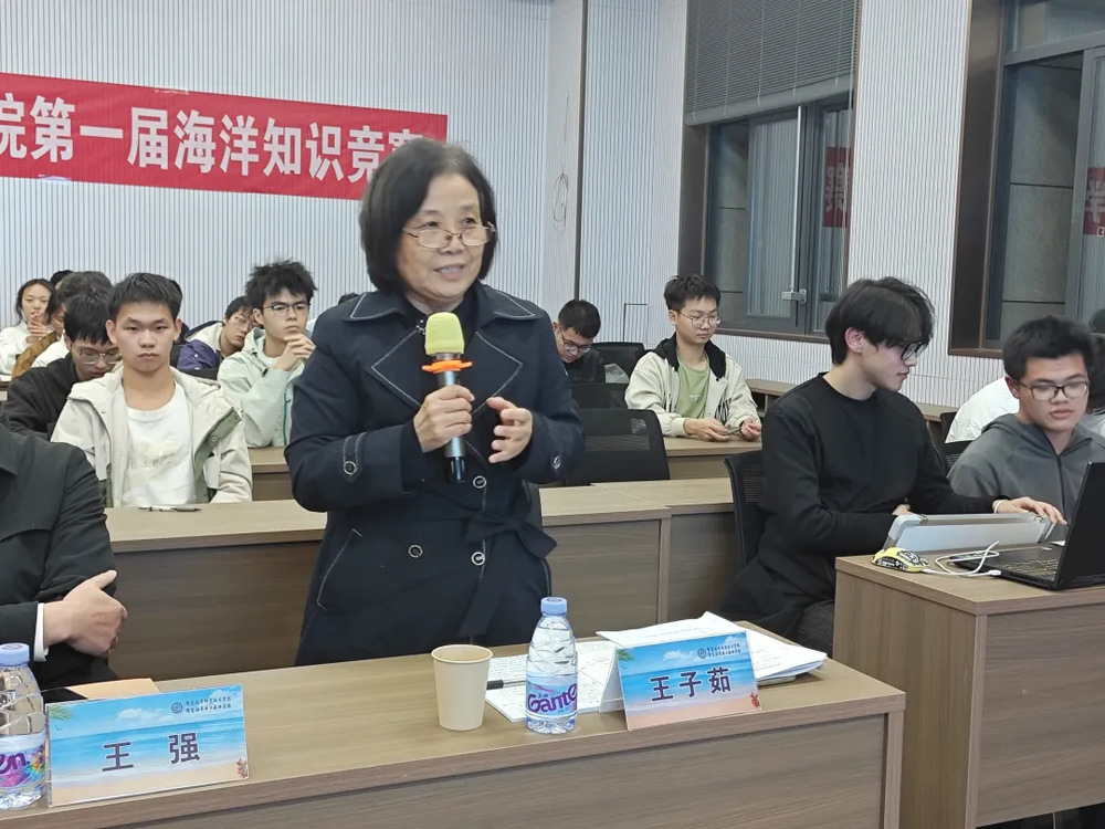 为深入贯彻落实习近平总书记关于建设海洋强国的重要论述,引导广大学生进一步关心海洋、认识海洋、经略海洋,近日,我院在生物与化学研究大楼113举行了首届海洋知识竞赛决赛。本次大赛由学院副院长欧阳永忠教授,中国航海科普大使、学院“智海领航”导师林超明董事长担任评委,院党委书记王强、副书记詹伟鹏、教学评导组王子茹教授、海洋科学导论任课老师林蔚出席,部分师生代表参加。