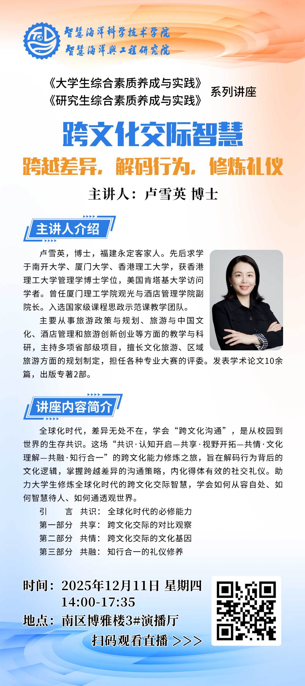《大学生综合素质养成与实践》《研究生综合素质养成与实践》系列讲座预告:跨文化交际智慧——跨越差异,解码行为,修炼礼仪