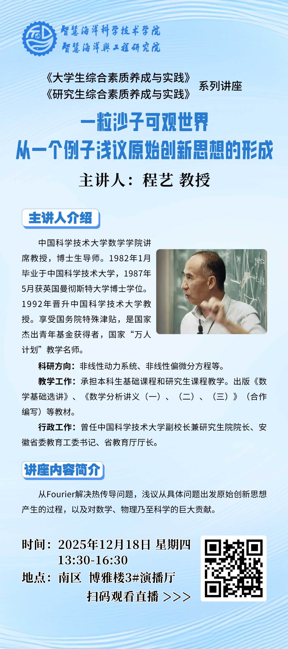 《大学生综合素质养成与实践》《研究生综合素质养成与实践》系列讲座预告:一粒沙子可观世界——从一个例子浅议原始创新思想的形成